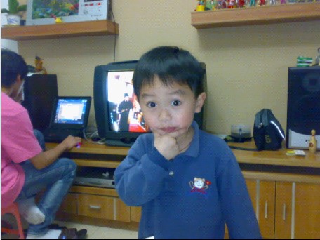 小孩不强,强的是电脑旁边是电视机.