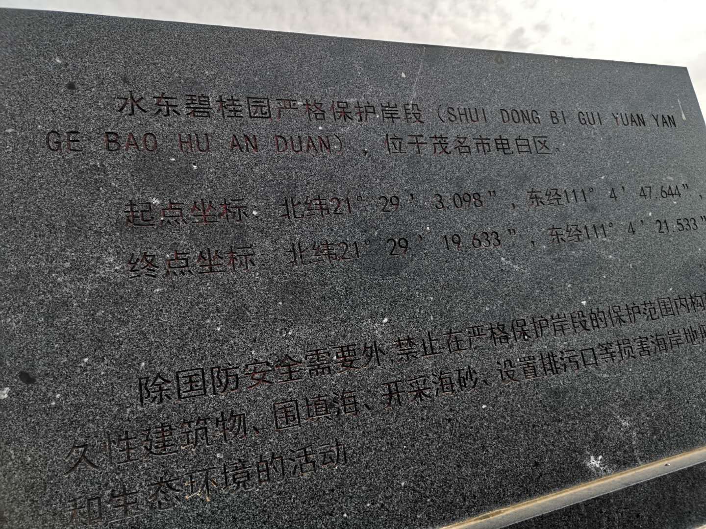 广东省政府业已竖碑明确相关位置为“水东碧桂园严格保护岸段”,若非国防需要,不得他用!
