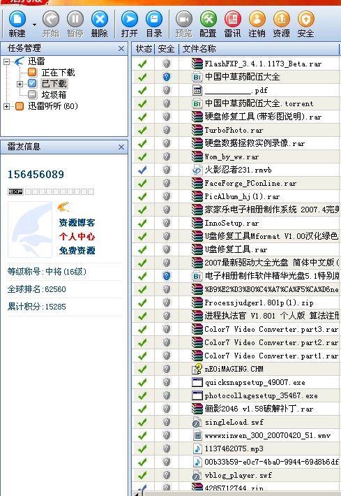 木糖醇 讲科学.破迷信.除陋习... 荣誉会员 注册 2005-07-25 消息 5,900 反馈评分 1 点数 61 年龄 37 2007-05-27 #2 你把"已下载"的项目都删除了. [attachmentid=133084] 然后去"垃圾箱"删除 [attachmentid=133083] 建议你重新安装迅雷,现在最新版本为5.6.2.300 http://down.sandai.net:8080/Thunder5.6.2.300.exe 附件 1.jpg 10.1 KB · 查看: 252 {07318E9C-EFBE-446D-A697-00F8D0FCEB0A}0.jpg 141.3 KB · 查看: 264