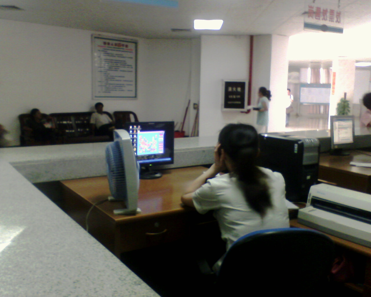QUOTE(APPO @ 2007年06月19日 Tuesday, 06:06 PM) 本来不起说什么的,看了楼主的发贴,我只有发张最近在交通局办证大厅相片,当班人员上班时候在玩游戏"大丰收",可惜手机相片不是很清楚。这样的工作态度合理提工资吗? [snapback]1796860[/snapback] 硬证据!好样的!