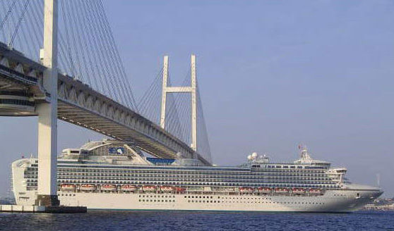一艘由挪威远航而来的豪华邮轮,在经过跨海大桥时,顶部和大桥发生碰撞,被卡在桥低下. [attachmentid=138268]