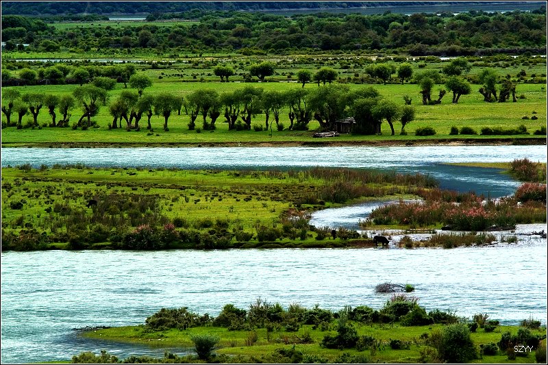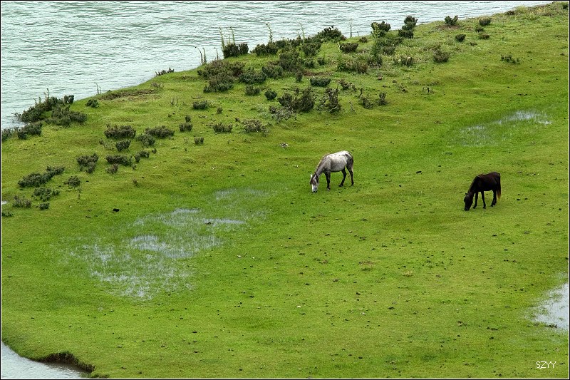 7点10到工布江达,我们把备用油桶的油全部加到油箱里,开了十多分钟,到达尼洋河的著名景点中流砥柱,刚拍了两张照片,就下起大雨。