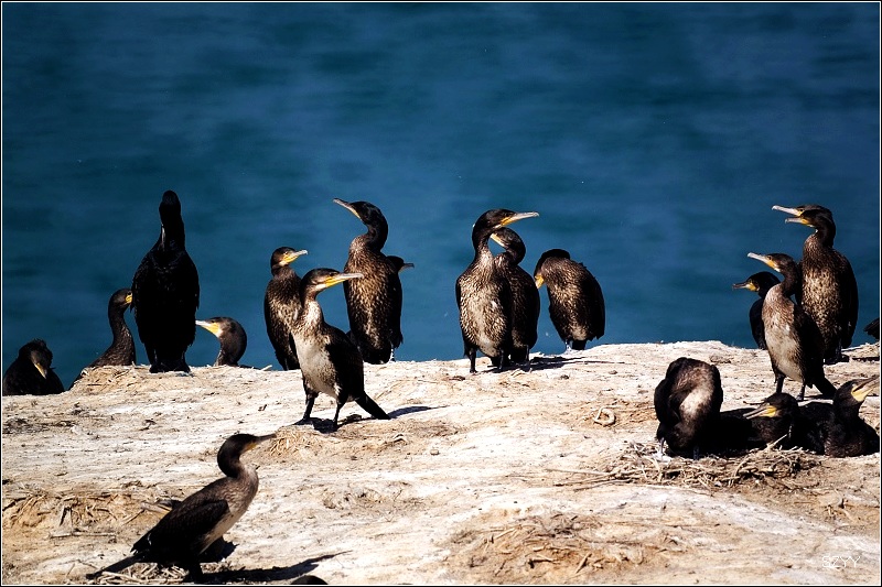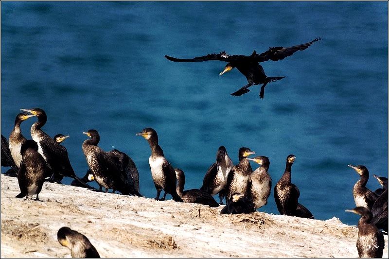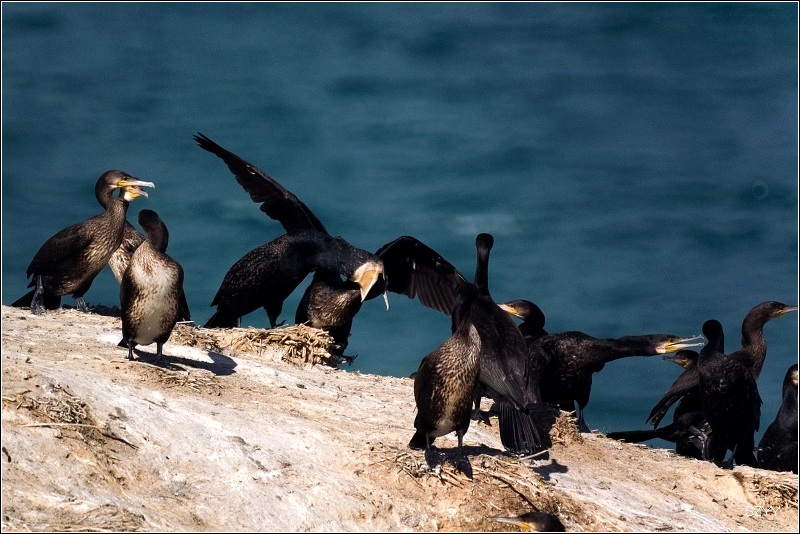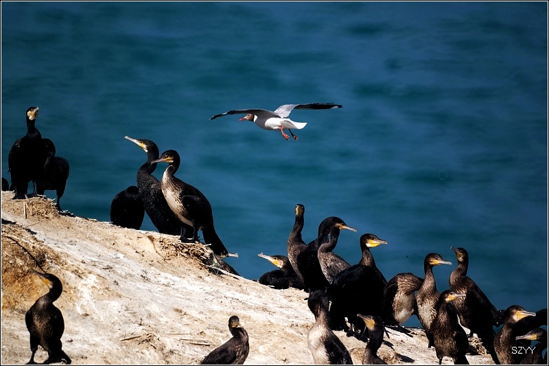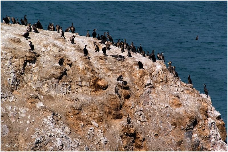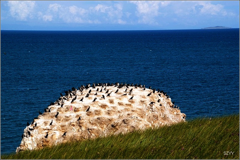 我个人觉得去青海湖一定要去鸟岛,否则看到的湖不漂亮。把车停在鸟岛外面的停车场,然后坐里面的环保车到达鸟岛。我们背着二十多斤的摄影包,向鸬鹚岛上爬。青海湖海拔3196米,继续向上爬,海拔更是不低,不少游客气喘吁吁,不过对于我们几个刚从高原上下来的人来说,这4千米以下的海拔完全是小菜一碟,我们连大气都没喘,非常轻松就爬上去了。