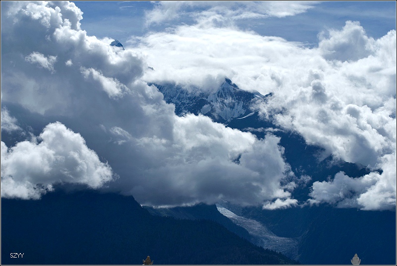 第八天(7月21日)被困梅里 昨天晚上下了一夜雨,早晨起来天还不亮,本希望拍到梅里日出,看来没戏了。各吃了碗面条,10元一碗,7点15在雨中出发前往盐井,刚开出不久,就看到前面正在塌方,两个山体中间的泥石向下滑,两块篮球大的石头往下滚,山体上的碎石泥土流下来盖住了整个路面,显然无法通过了,而且我们进入塌方区域,路面有很多昨晚从山上掉下来的石头,随时有危险,立刻掉头,往回开,北方郎看了看早晨刚清零的里程表,离开我们住的梅里客栈约9公里。回头看,塌方还在继续,像泥石流一样往下流。路上拦住几辆车,跟他们说了情况,于是全部返回飞来寺,雨在继续,看到路边有帐篷和大铲车,我下去,钻进帐篷,喊了几声,里面黑黑的,看清有三个人,我说了说情况,请他们帮忙清理路面,他们说他们不是道班。跳回车上,赶回客栈,只有等道班修路了,客栈老板说今天肯定过不去了,而且他说20年来没见过这样下连阴雨的。而且雨不停,道班是不会出动的。 没事干,达咏说去飞来寺看看。我们穿上雨衣,这时我才想起来忘了买雨裤,后面可能会遇到麻烦。从客栈到飞来寺走路只有十几分钟的距离,看了看,是个很小的寺庙,有几个藏民在上香。没什么好拍的,返回客栈,下午一直呆在梅里客栈的火塘聊吧,他们几个打牌,我上网,回了几个帖子,处理了几张照片。这时在网上看到川藏线国道318芒康到竹卡段19日发生大面积山体滑坡,当地武警在抢修,无论滇藏线还是川藏线,这一段都是必经之路。不知道现在是否已经修通。准备去盐井方向的车都停在了客栈外面,有的返回德钦,广州的那位壮汉跟我们商量是否返回奔子栏镇,然后走德荣,从巴塘方向并入川藏线进藏,可是这样就要重新翻越白马雪山,会多耽误一天时间,而且德荣到巴塘的路不是国道,万一遇到塌方,估计没有这边214国道清理的这么快。所以大家决定就地等待。云雾朦胧中看到对面的梅里雪山上冰川比昨天宽了很多,冰雪大量增加。显然昨天我们这下了一晚上雨,而山上是下了一夜雪。拿出相机,用长焦拍了几张冰川的片子。听到当地一个司机说,下午就会有人去清理塌方,而且塌方不止我们遇到的9公里处,还有23公里的地方也有,规模跟这边差不多。 客栈的主人是一个小伙子,他把整个家庭旅馆承包给了别人,他在这条线上开了很多年车,跟我们分析了路况,建议我们住下等待,一个开深圳车牌的老头跟他抬杠,说可以自己用铲子挖,还说自己开车的年龄比小伙子的年龄还大,那小伙子有点不高兴。 想更新一下QQ空间的日志,自从出行以来,很少有机会上网,日志只有第一天的。可是很奇怪,能上QQ,却不能更新内容,只好作罢。客栈酒吧里几群游客都在打牌,有几个沉不住气的年轻人已经在计划不进西藏,往回走了,广州壮汉跟我说:年轻人就是没有耐心哈,我笑了笑。反正不着急,因为在计划出行的时候,我们预留了旅行的机动时间。 中午睡了一觉,醒来继续等待,下楼看到旅游局的局长,跟他聊了聊,他说有不少游客被堵在塌方公路的另一侧,雨崩和雪山的其他地方,回不来,所以旅游局派人清理9公里处的塌方,23公里的似乎没动静,大约下午4点,看到一辆装载机开过去,但愿能早些恢复通车。下午4点半听深圳老头说通车了,马上退房间,出发,到了9公里处,还不通,铲车正在清理,说要40分钟,23公里处也修通了。可是过了没多一会儿,就听说去盐井的路上不通,连佛山都到不了,只好掉头,再次返回梅里客栈。 继续等待,大家有些烦躁。那个深圳老头开车过去了,估计他会被堵在盐井附近。晚上,广州壮汉过来跟我和北方郎商量第二天的行程,听他说普通话的口音,我问他是不是陕西人,果然是,他是西安的,在广州工作。他让我们叫他“光头”,他听说中甸开往拉萨的班车已经改走德荣,这跟我中午睡觉时听外面一个女孩大声打电话时所说的内容相符。我们商量后,也觉得走德荣的方案可行,这样我们又要重新翻越白马雪山,返回奔子栏镇。那边的路我们大家都没有走过,也充满未知数,不过看着不断下着的雨,滇藏路不通,晚上还可能发生新的塌方,更遭的是,如果德荣那边也发生塌方,我们就有可能走稻城亚丁那边最后返回成都,再回深圳,这样无功而返让人实在不甘心,但是道班雨天又不工作。这样干等下去也不成。最后跟达咏和老严商量了一下,大家下定决心,走德荣。早晨6点起床,6点半出发。