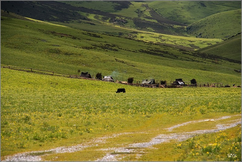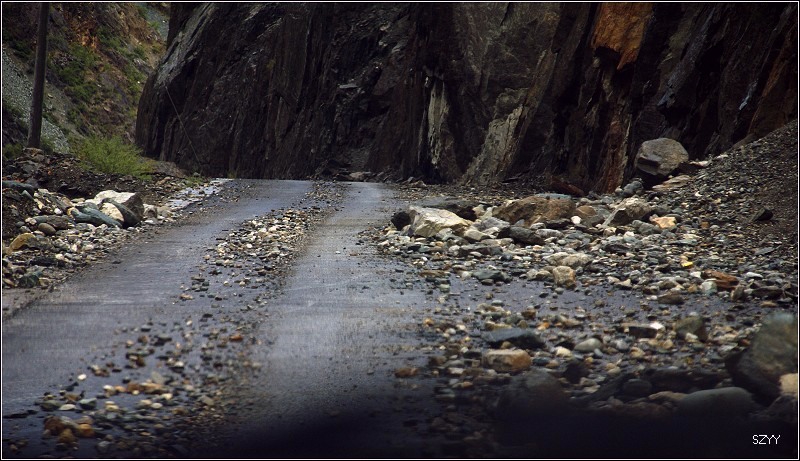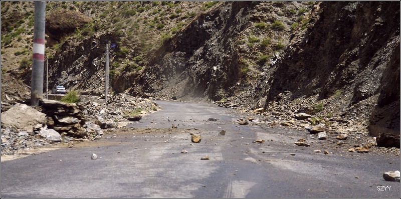 路过村子,有几条规模不大的泥石流,我们小心开了过去。