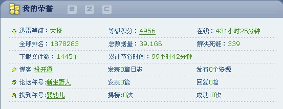 ?? 荣誉会员 荣誉会员 注册 2004-08-25 消息 1,917 反馈评分 0 点数 61 年龄 37 2007-08-27 #7 感觉迅雷的BT下载 不如BT好 大家是否有这种感觉 还有就是迅雷下载占用资源较多。。。