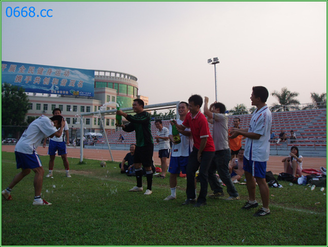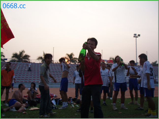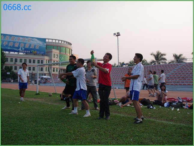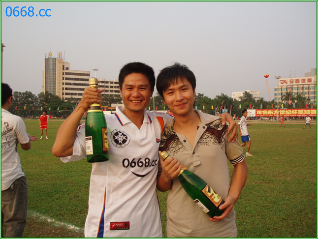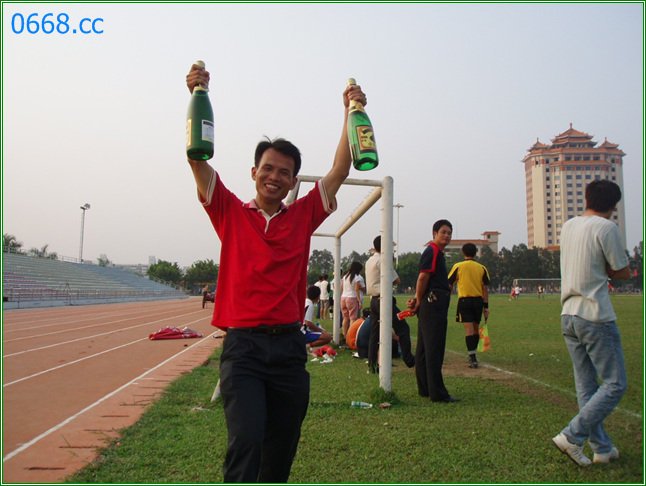 9月7日这天我们早早的做好准备.买好了香槟酒.就算这场球输了也没所谓.毕竟我们电白足球队己经打破了历史记录.