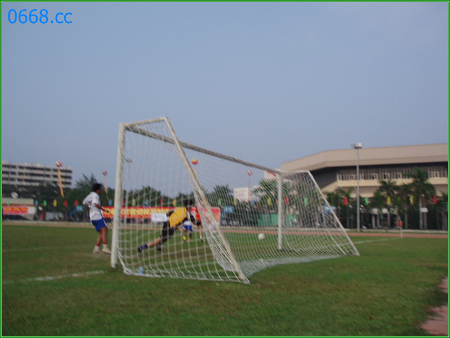 转眼间.我们的后锋球员`楼顶有人`终于打入了一球.因当时太兴奋了都忘了拍照.