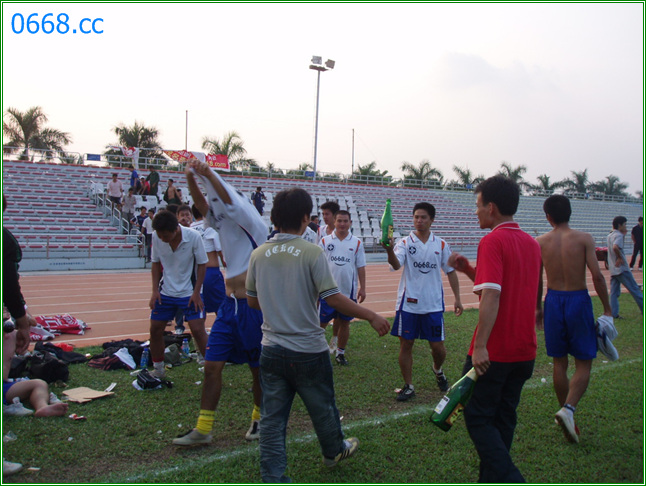 加油.......还有些球迷激动的举着`电白水东湾足球队`0668.cc`.红旗围着球场跑了几圈.现场是那样的激动.