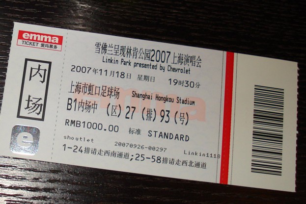 O Otaku 小学二年级 注册 2006-12-22 消息 160 反馈评分 0 点数 0 2007-09-14 #3 订票电话:021-61025505 63556955 Linkin Park 林肯公园上海演唱会 时间:2007年11月18日 场馆:虹口足球场 票价:-- 不可能假吧