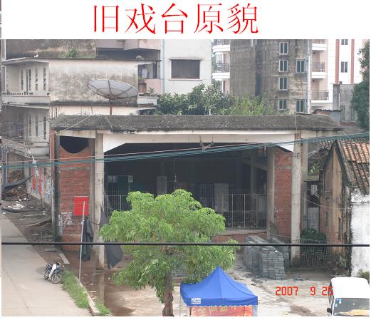 1、改建树仔旧舞台。将旧舞台改建成多功能舞台,位置稍有变动,座东朝西。