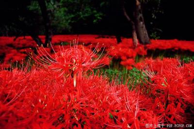 彼岸花是开在黄泉之路的花朵,在那儿大批大批的开着这花,远远看上去就像是血所铺成的地毯, 又因其红的似火而被喻为”火照之路” 也是这长长黄泉路上唯一的风景与色彩. 人就踏着这花的指引通向幽冥之狱。