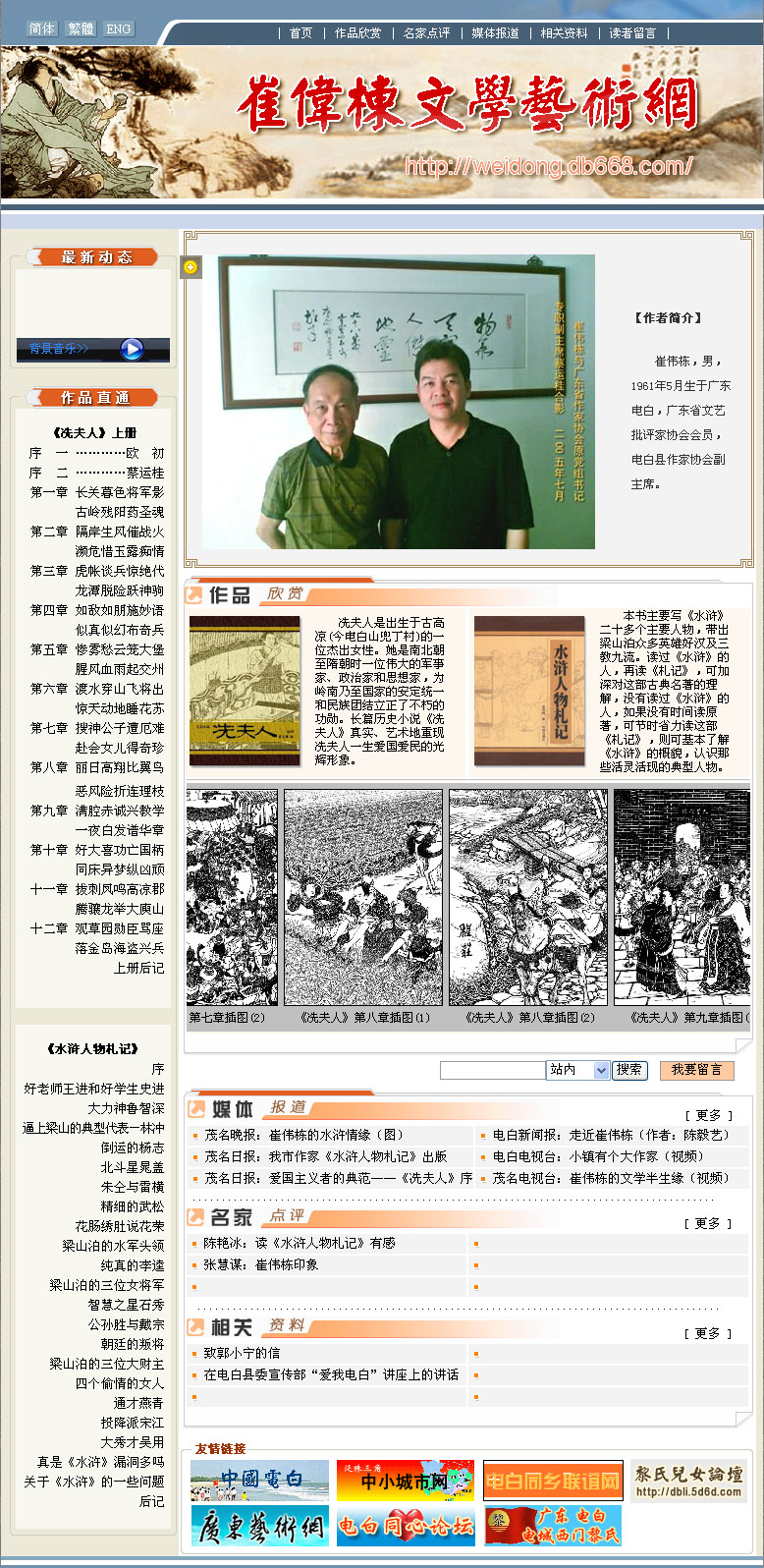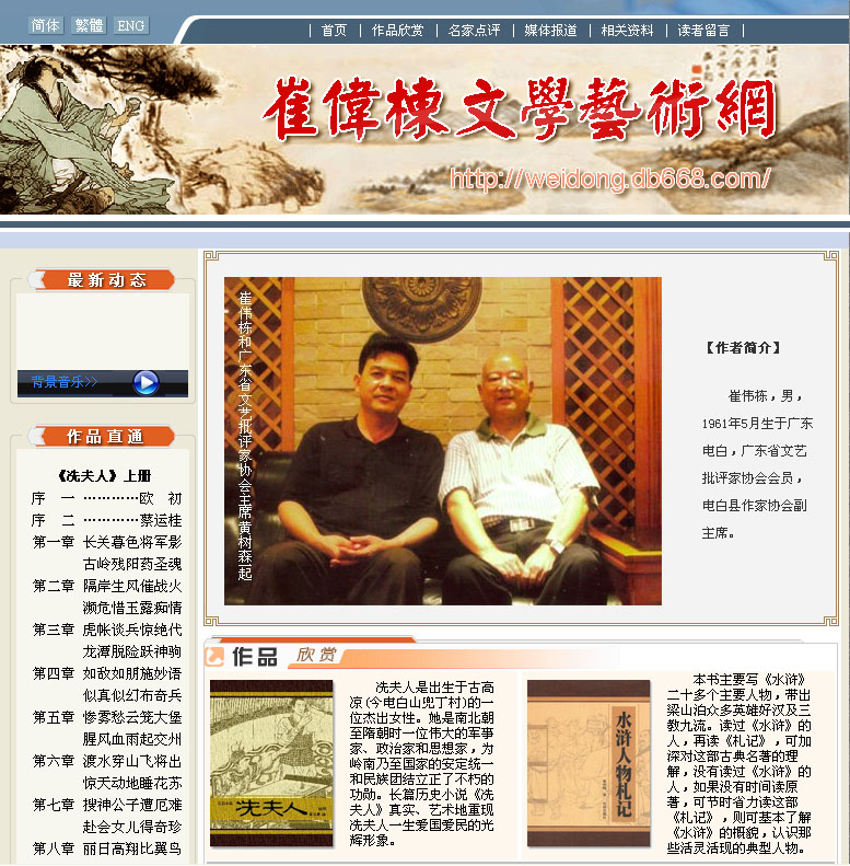 电白作家崔伟栋先生的作品《冼夫人》、《水浒人物札记》上网了,网址http://weidong.db668.com