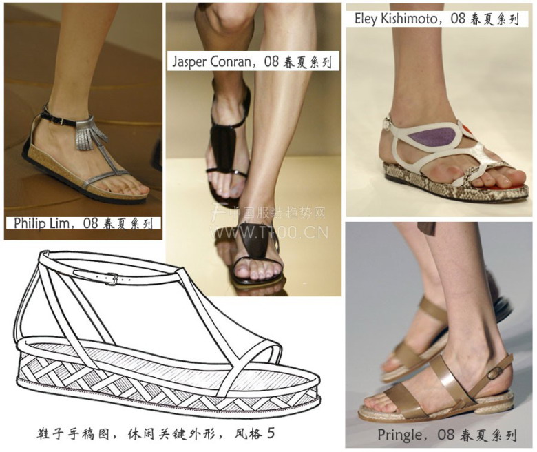 以下是为08春夏女装现代类鞋子而设的关键外形和细节:
