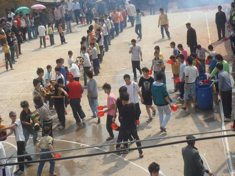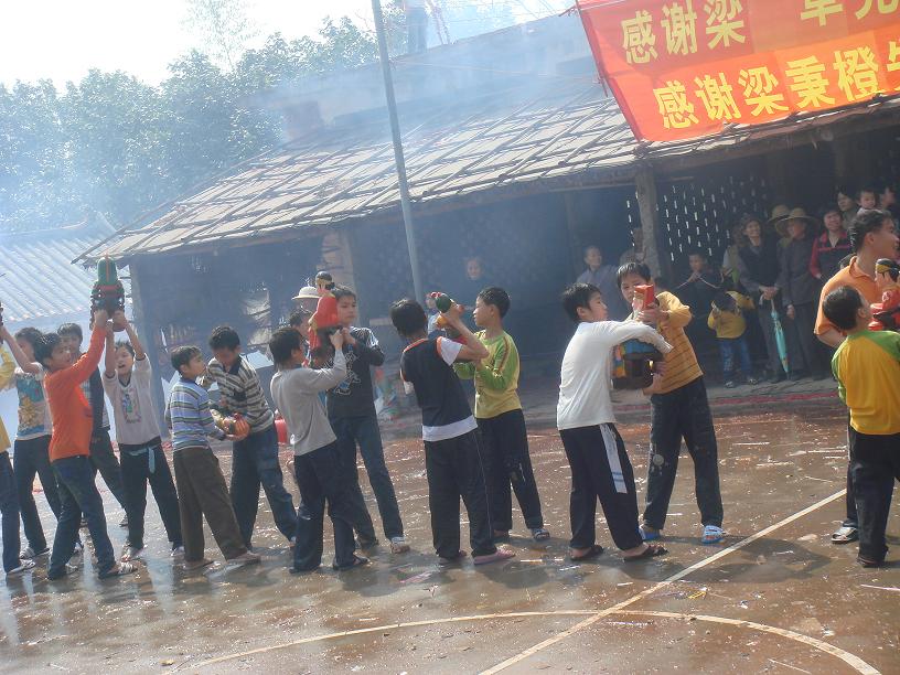 QUOTE(蛙子 @ 2008年03月08日 Saturday, 04:45 PM) 看起来是很有特色,莫非如泼水节 [snapback]2146147[/snapback] 很多人说是泼水节,但是我们和泼水节不同,我们的抿公活动是要举着公买的,还有就是有锣鼓亭奏乐,还有炮竹伴着一起的!差不多半小时的活动,烧炮竹都不知道要烧多少钱啊! [attachmentid=166317] 锣鼓亭在奏乐 [attachmentid=166318] 淋水喜庆 [attachmentid=166319] 烧炮竹