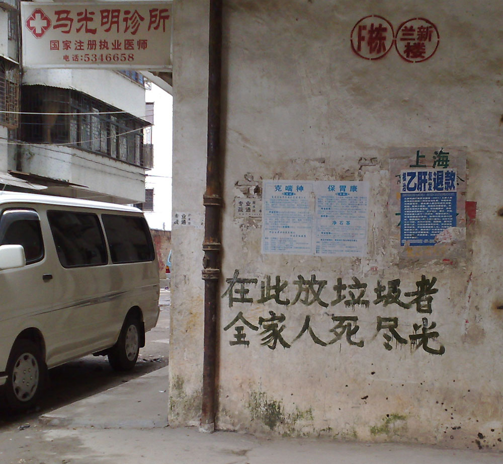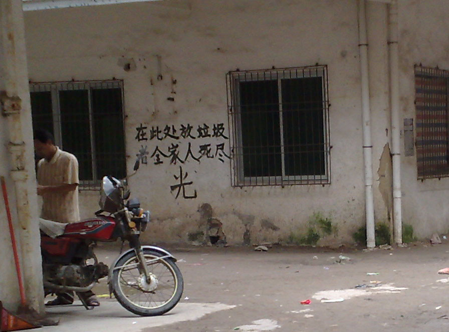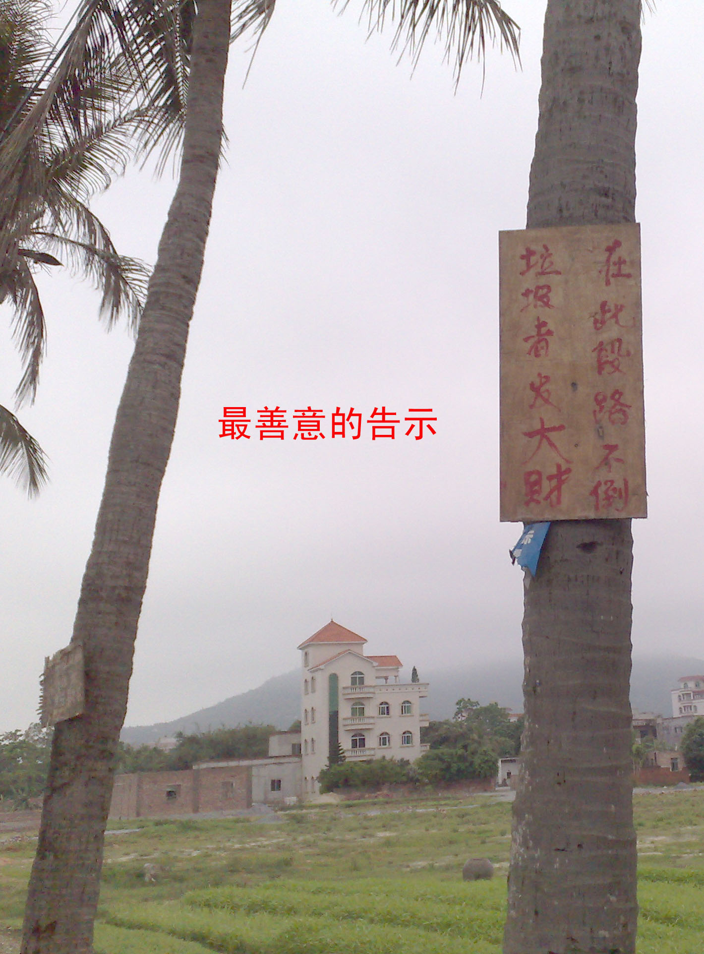 写这告示的作者用意很明显,但和在此乱倒垃圾的人又有什么分别
