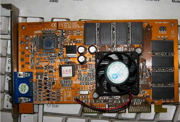 自用的GeForce2 MX400 64M 显卡,新天下小影霸的,不是杂牌产品,当年很经典的显卡,便宜处理