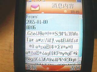 不知是有人恶作剧还是移动的系统出了问题,今天下午我收到了一条来自未来的短信。该短信没有发信的手机号码,日期2065年月1 月80日,内容是一些我看不懂的符号和乱码。看着短信我不由想起了看过的一部日本恐怖电影《鬼来电》就不寒而栗,不过又想想,能活到2065年我已很满足了。