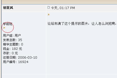 初 初夏风 小学四年级 注册 2006-03-10 消息 277 反馈评分 1 点数 1 2008-07-01 #1 (screen.width*0.8-70)) this.width=(screen.width*0.8-70)'> 论坛布满了这个提示的图片,让人怎么浏览啊,还要不要改呢?