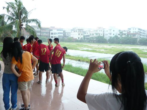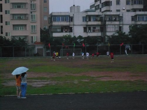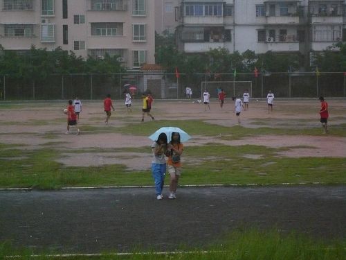 由于上午相机没到位..所以没有上午的相片资料..敬请原谅.. 下午比赛刚开始几分钟老天让我们见识到什么叫倾盆大雨.. [attachmentid=180865] 可爱的工作人员吃波饼..好甜.. [attachmentid=180866] 德联的女球迷真敬业..雨中观战.. [attachmentid=180867] [attachmentid=180868]
