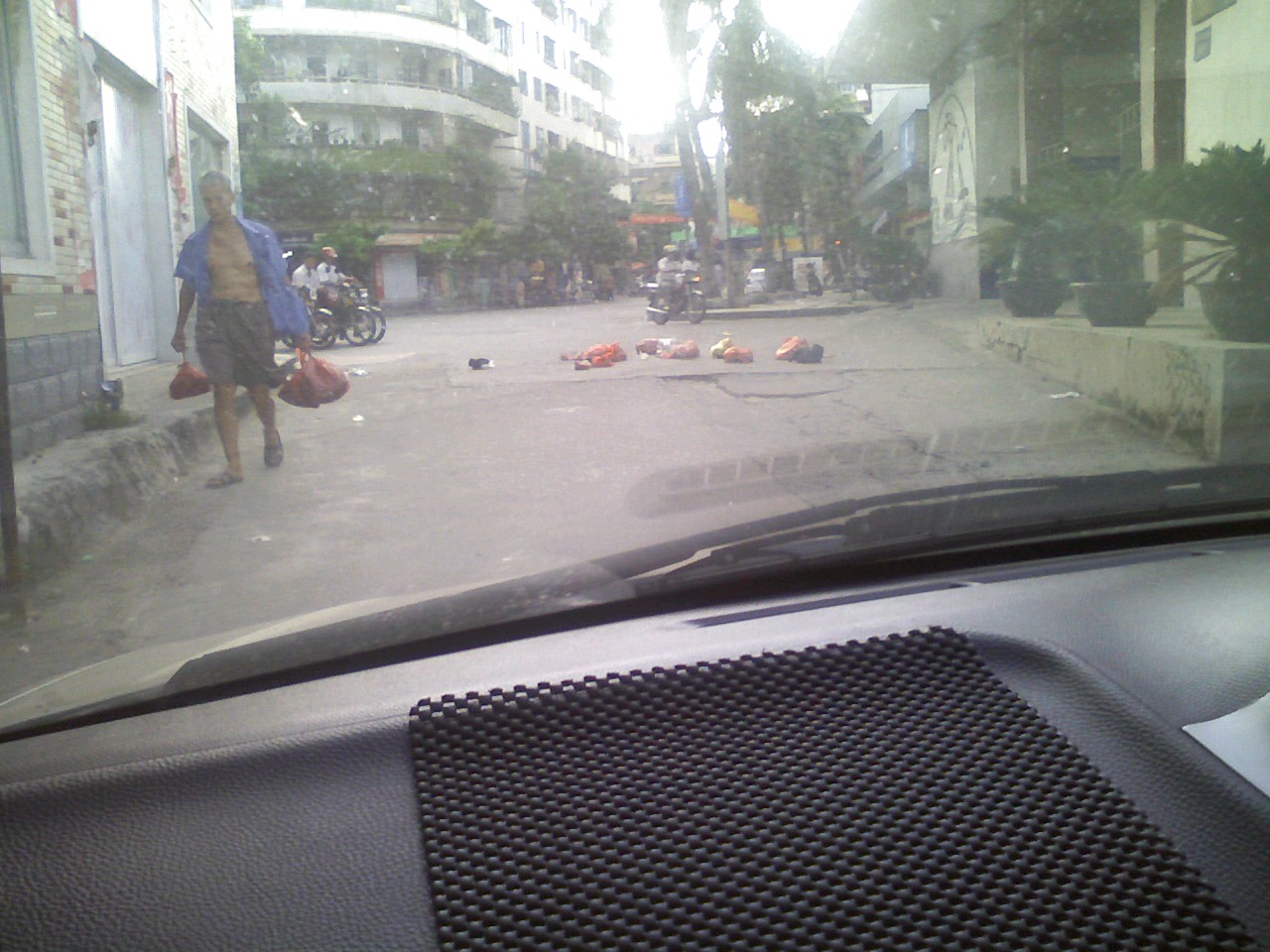 2008年7月25日下午18时20分,我刚从旧一中球场出来,来到旧县政府门口路段时,看到车前十多米有一老人将墙边的垃圾袋(约有十几个)不停往路中间扔。。。。。。。。 。。。。。。。看看相片,让你想到了什么? [attachmentid=183152] [attachmentid=183153] [attachmentid=183154]