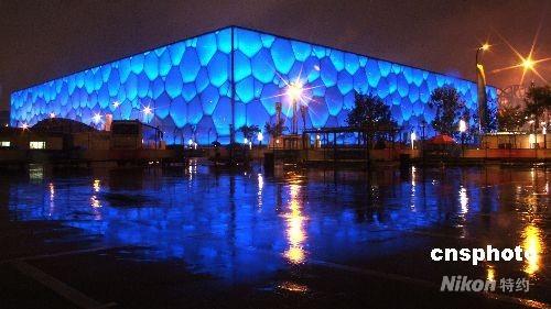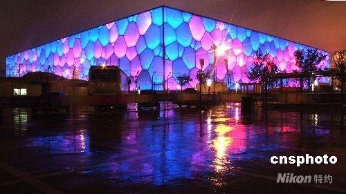 雨夜“水立方” 映耀“五彩缤纷”