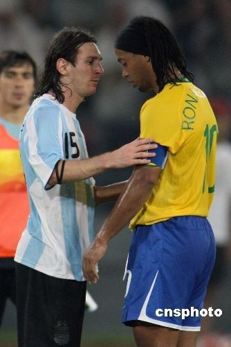第18分钟,布雷诺中场放倒了突破的阿圭罗,吃到黄牌。梅西任意球直接射门,门将雷南快速移动直接将球抱住。第27分钟,小罗中场左侧杂耍般过人成功,随后直塞球撕开了阿根廷防线,索比斯快速插上,可惜传中前与加雷身体接触后,痛苦得摔倒在地。