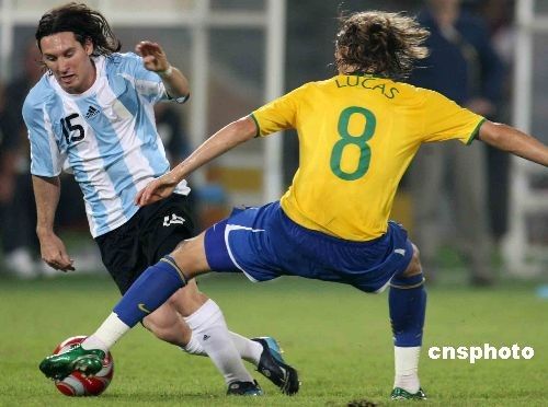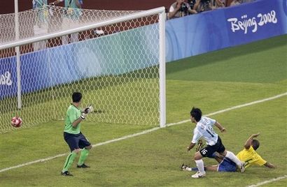 北京时间今晚21点,北京奥运的男子足球第二场半决赛在北京工人体育场打响,对阵双方是南美双雄巴西和阿根廷。双方奉献了一场精彩绝伦的对攻战,阿根廷依靠阿圭罗的2个进球3-0击败死敌巴西挺进决赛。巴西队下半时两次击中门柱。卫冕冠军阿根廷决赛的对手是尼日利亚,巴西将与比利时争夺铜牌。