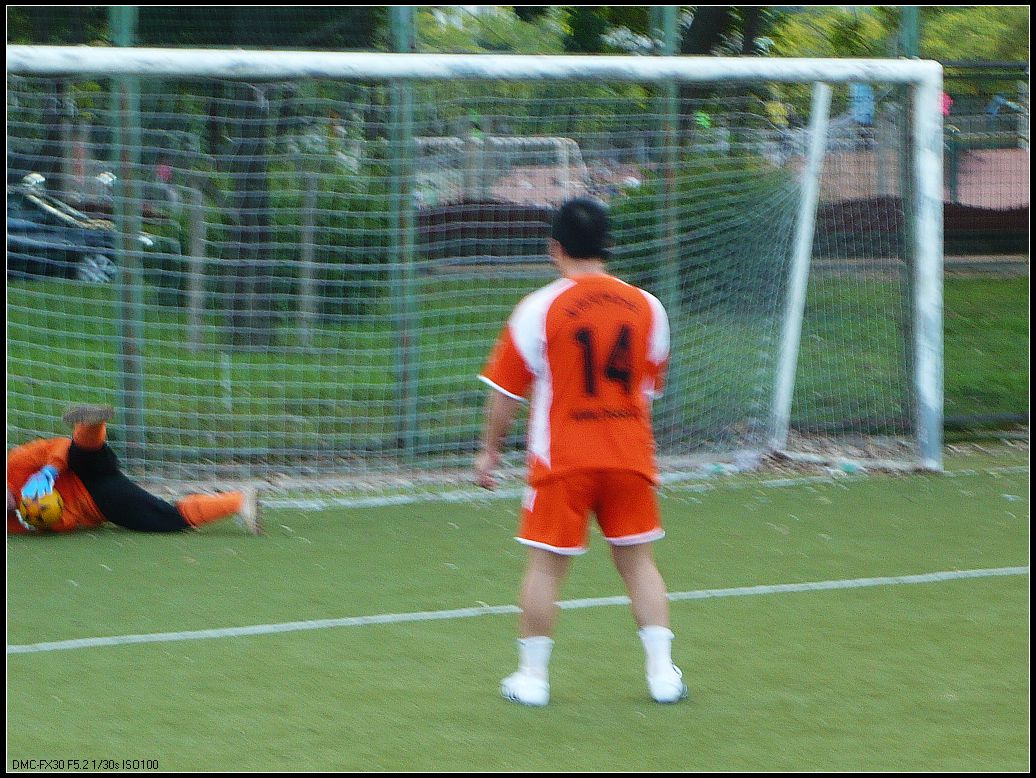 但对于我们来说能够和强手过招..是个很好的学习机会..这样才能找出差距..找出自己的不足..对手基本功明显比我们要高很多..特别停球护球和一脚出球那活儿要比我们高出几层楼..但再历害的老虎也有打"柯"睡的时候..我们通中路配合打进了对方一球..