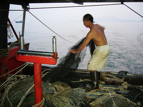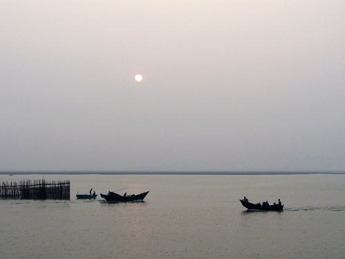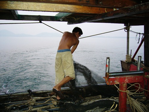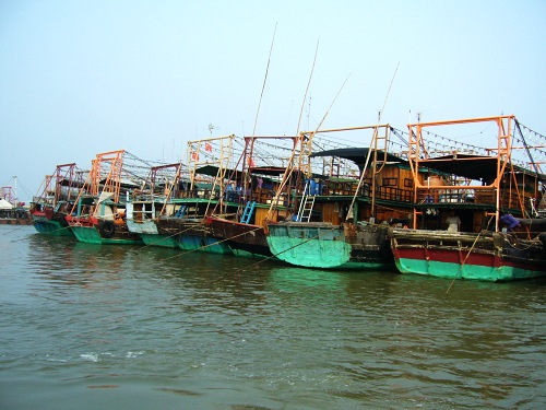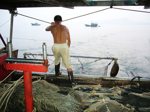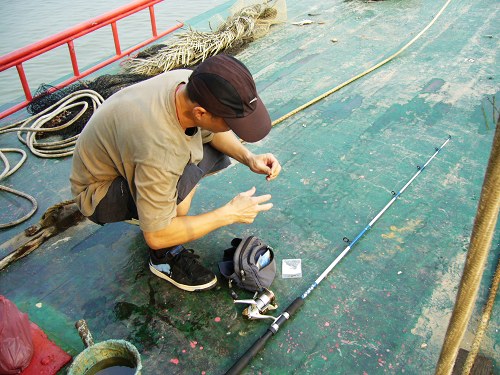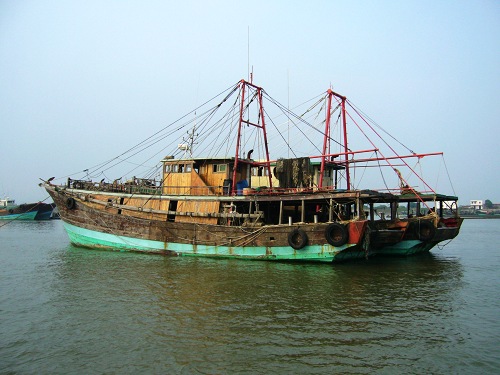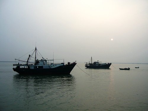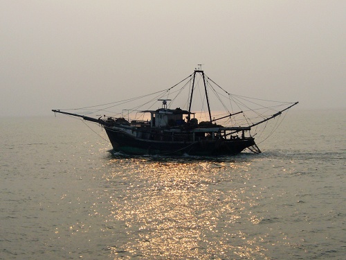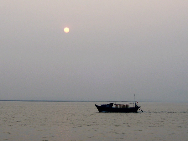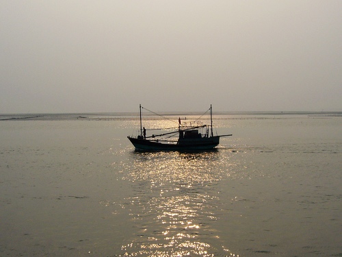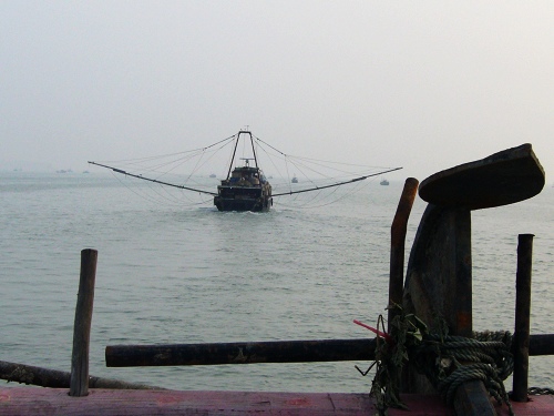 下午四时,我们准时上到了船上,这是一艘捕虾船,长宽我不好估计,大家自已判断吧.