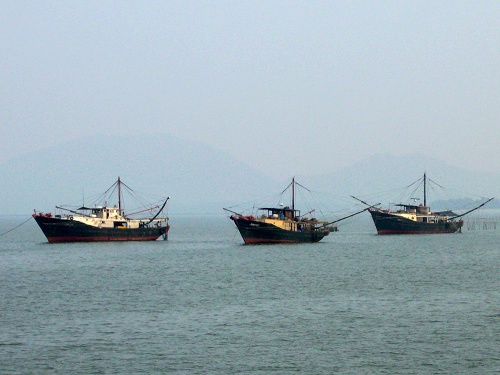 这两天在家闲得发闷,约了两个朋友跟船出海.根据约定的时间,我们提前来到博贺渔港,趁未出发之前,先填饱肚子,每人来一碗牛杂汤粉,唔!味道还好.