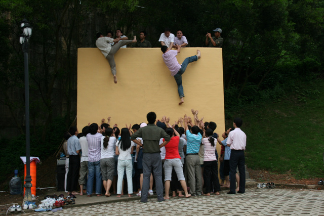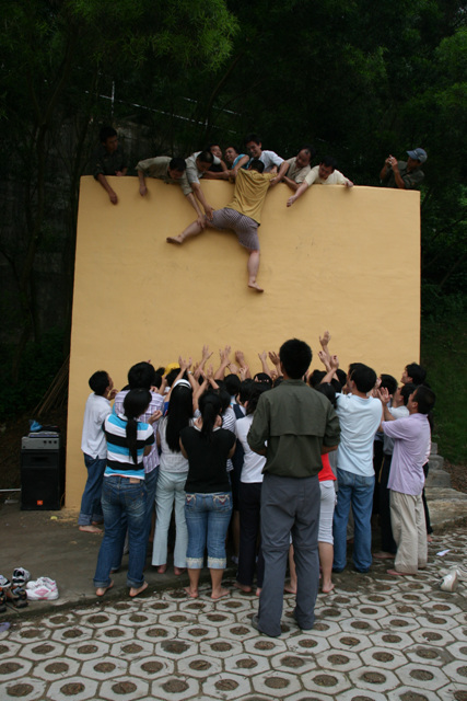 QUOTE(四中乐叔 @ 2008年10月29日 Wednesday, 09:54 PM) 2008-07-30深圳南澳拓展训练 [snapback]2529946[/snapback] 翻毕业墙,4米的墙,靠团队协助,把每个队员接上翻过毕业墙。