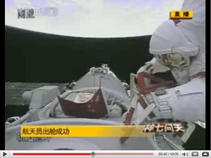 对这些飞出的小物体,据TVBS求证酒泉卫星发射中心,他们认为气泡很可能是“大气灰尘”,或者是太空船飘出的异物。在340公里的轨道上,我不知道“大气灰尘”是个什么东西?这里权且把它当作是“太空尘埃”的口误。但是这也不能自圆其说。首先太空中像视频显示那样大颗粒的太空尘埃的密度还没有达到那种成度,几分钟录像内就和太空人遭遇数次。