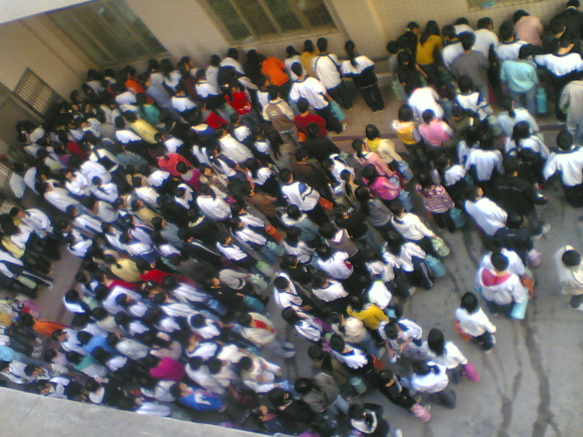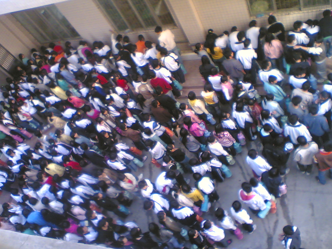 和电白一中、电海中学一样,刚下课,几千人,要排队打水,真烦啊!要是不用排队,多好啊!