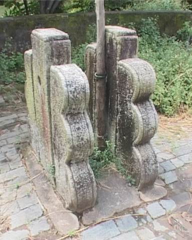 每块旗杆石上下各开一个圆形小孔。两个小孔用来穿一条木制横杆,横杆中间可以绑扎一根旗杆,旗杆上可挂一面旗。