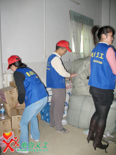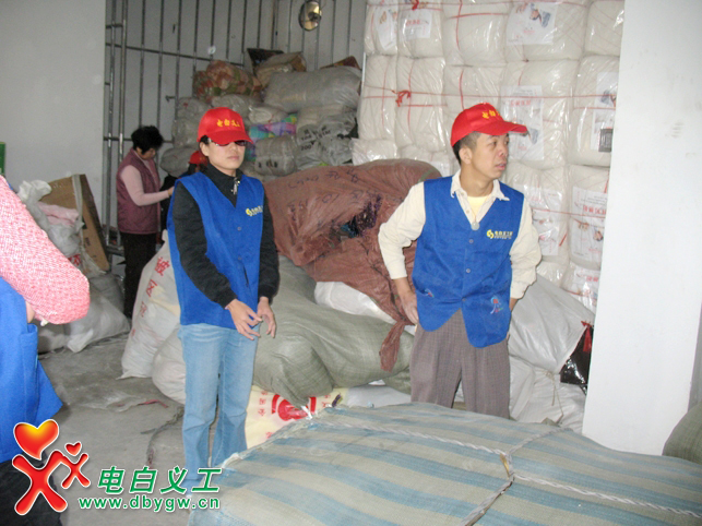 ■ 1月10日,电白义工团接到电白民政局的任务安排,有批救灾慰问御寒物资急需整理入仓,赶在严寒来临之际派送到下面乡镇低保户、特困家庭、五保户手中,数名电白义工在接到任务后,清晨冒着寒风赶到了电白民政局,包括一名特地从茂名赶过来的热心义工也参与到了整理物质活动的行列,在经过两个多小时忙碌搬运,我们完成了入仓整理工作,民政领导与各位义工脸上都浮现了会心的笑容……我们在此祈祷,愿那些有需要的人们能度过一个温暖的冬季!