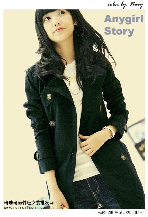 • 韩版双排扣配腰带有内衬时尚风衣58元.jpg