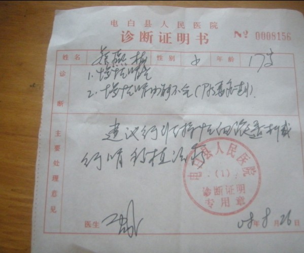 这是蔡燕梅诊断证明书