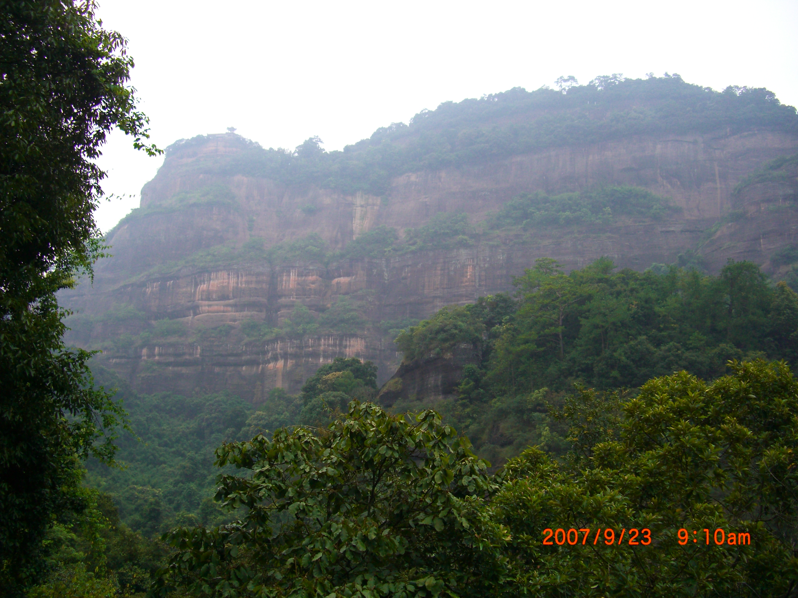 如果说七星岩是一位经大自然精雕细刻的翩翩少女,那么,丹霞山就必定是一位大老粗。它脸色黝黑,无处不弥透着粗犷、豪迈的气息,完全就是大自然的大手笔,是一副宏伟的中国山水画,一挥则就。
