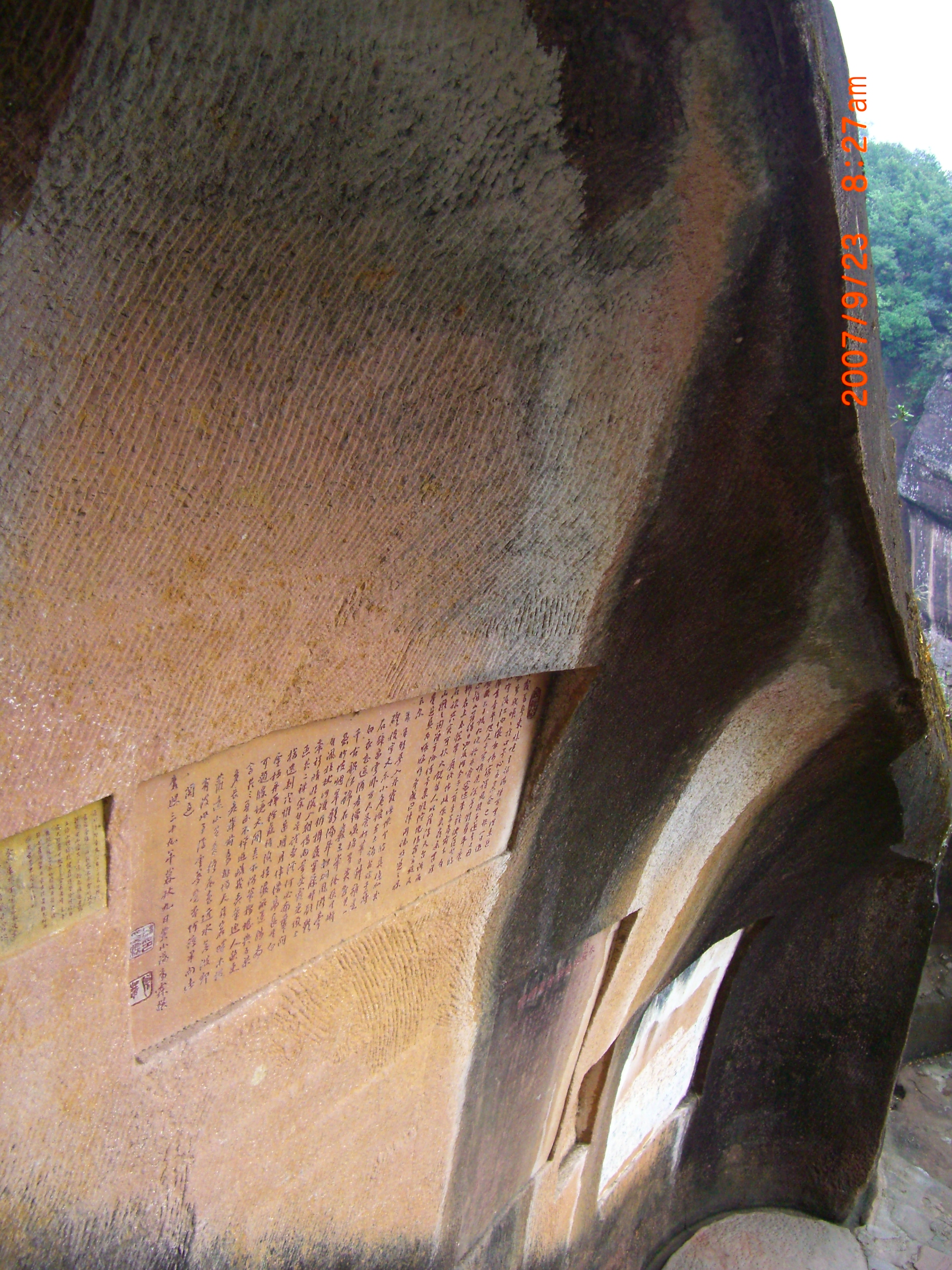 丹霞山也有寺,然而规模不大,不似鼎湖山之寺庙林立,也不似七星岩之佛像遍布。它只安静地留守一处,并取了一个很特别的名字叫别传寺。寺庙已经整修,只有寺外的崖壁上刻的康熙、乾隆、民国碑文记录下它的千年风云,让它坚守住“禅林第一”的地位。