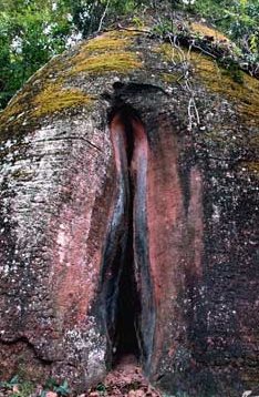 阴元山则低调得让人心疼!翻山越岭,穿过渺无人烟的竹林,跨过阴深幽静的原始森林,好不容易觅到,却发现她是如此低卑,拘泥于一个毫不起眼的角落。重树底下隐藏汩汩清流,蕴涵女性之柔情似水,跟前,却是层层山峰,压逼而来。只能哀叹上天造物之不公,即使是一块阴元石,也要承受监视与压迫。