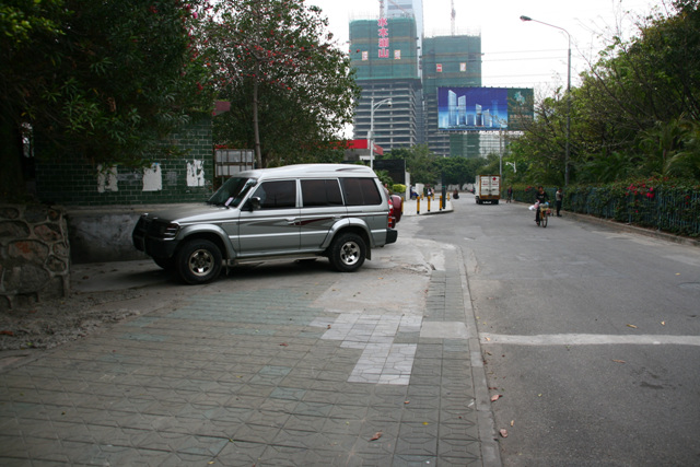 今天下午参加科学发展观的动员大会,政府主办单位为了自己门口道路的畅通,而单位内的停车场不足。来开会者把车停在门口的小区道路(未划归市政管理的未划线道路)。