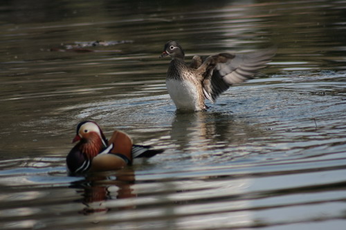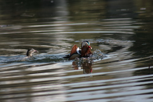 2009.03.14上午10:25时,小枪打鸟,无意中打到这两只鸳鸯戏水……,意外收获!仅供欣赏。