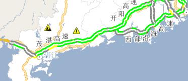 阳茂高速公路 从马踏 往茂名方向13公里处 出现2公里长的路段严重拥堵