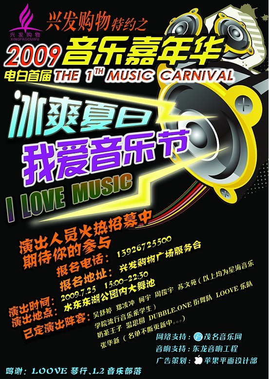 J jackie444 荣誉会员 荣誉会员 注册 2006-05-10 消息 2,241 反馈评分 3 点数 61 年龄 42 2009-06-09 #1 本次音乐嘉年华主要汇集电白本地有名气的音乐人的和外出的本地音乐人才的一次音乐盛会,动用人员和规模之大都是空前的。有兴趣参与的朋友可以电话联系参加试音。音乐形式不限。最重要是新意。(13926725500) 附件 未命名.jpg 180.4 KB · 查看: 416