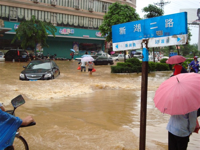 [attachmentid=218384] 瑞湖楼上的住客也在用手机拍 看来他们今天要续房了 [attachmentid=218385] 新湖二路 [attachmentid=218386] [attachmentid=218387] 这个蓝鸟的车前面的护扛没有了 应该是今天碰的吧,水太高了看不到障碍物 大家开车要小心!