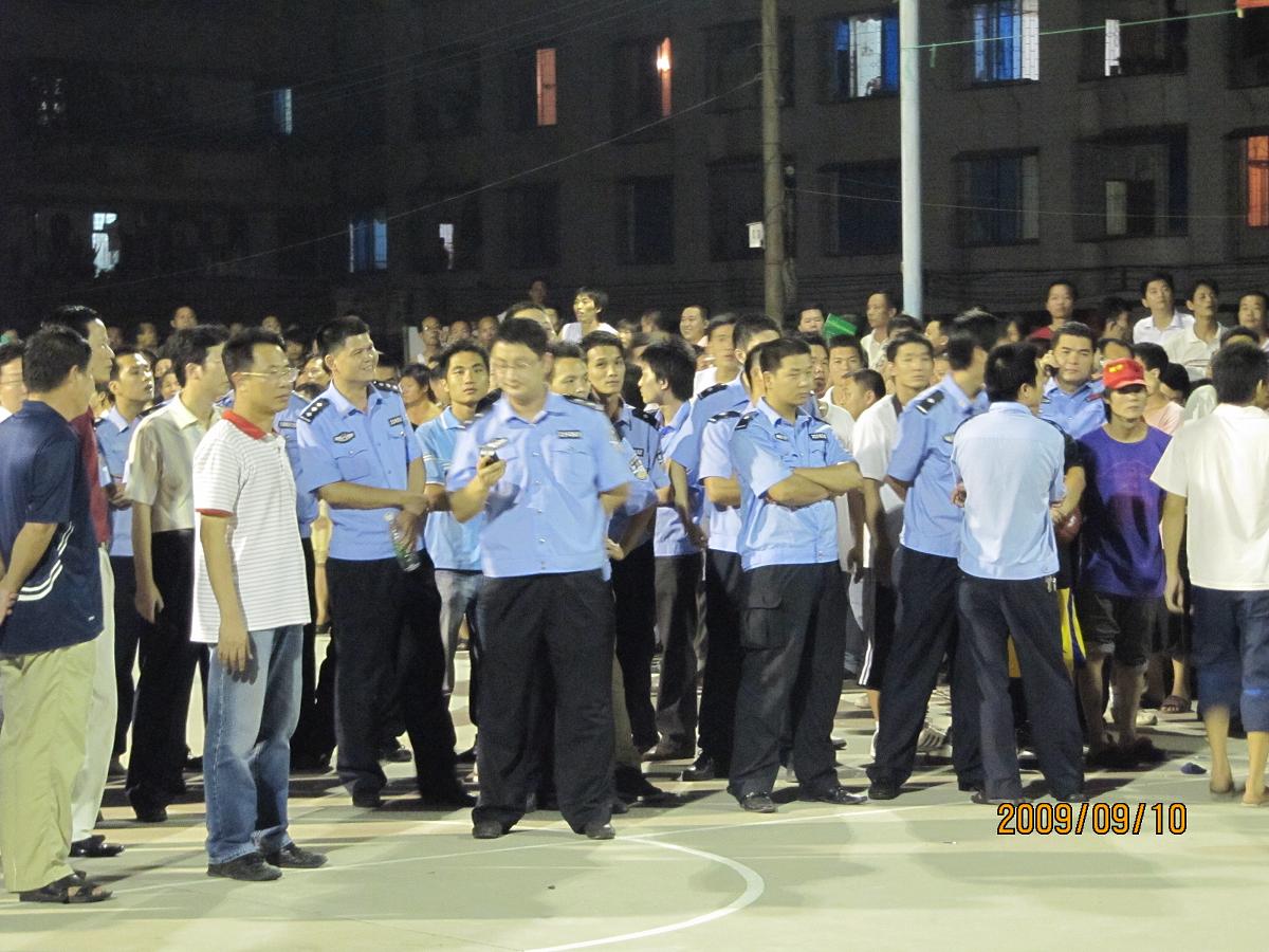 最多能容纳二千人的体育局球场,组委会没有想到树仔就来了一千五百左右球迷观看决赛,在场的领导多次致电公安局增援干警来维持秩序,从刚开始的三头几个警察增加到四十多人,加上外面交警疏导交通等工作方面的,估计为决赛出动上百警察。