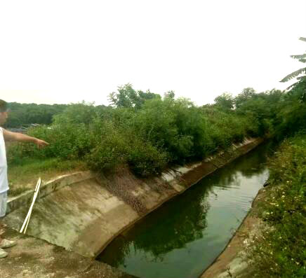 是啊,水库高高在上,不过养鸭的地方也导致水渠水质泛绿了,见下面照片: