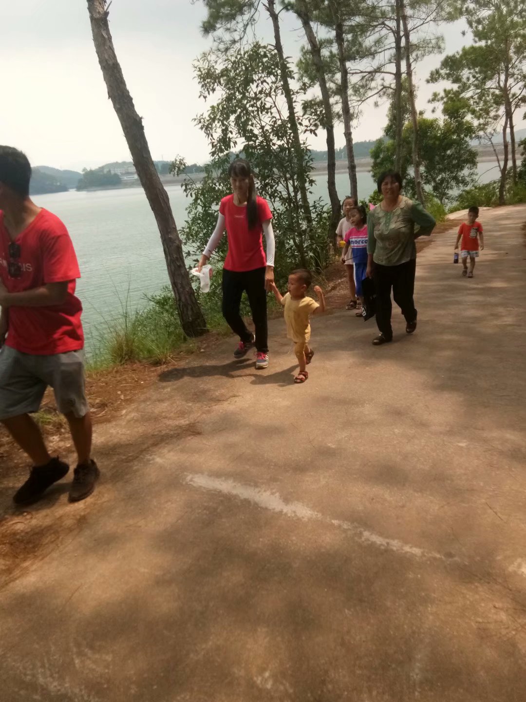 这个可爱的小童掉队了,他小手提着一瓶饮料,左看右看。他进入的水库游览区是无需要购买门票的