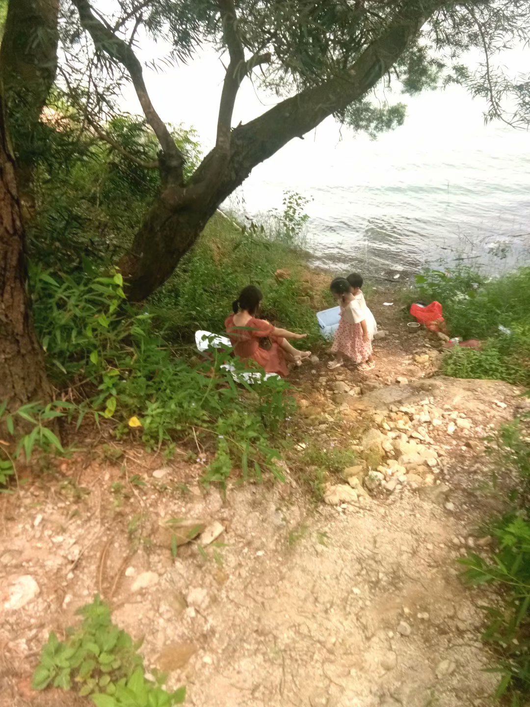 什么叫幸福?一对小女儿和母亲在周六来到水库边度过休闲时光,亲近大自然,享受天伦之乐,这也是一种幸福啊。
